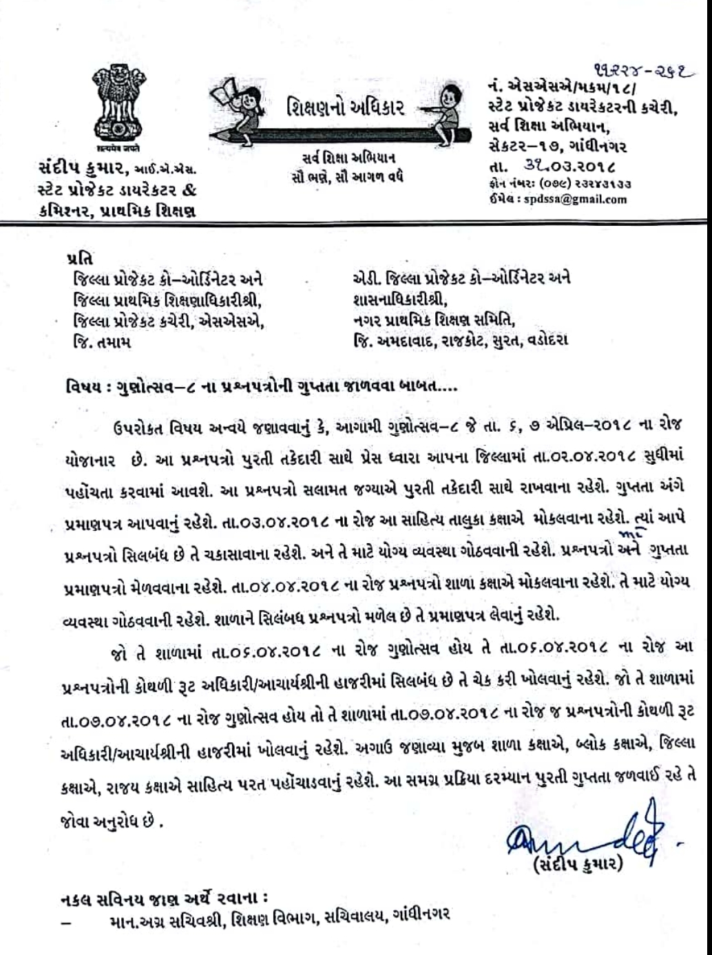GUNOTSAV-8 PAPER NI GUPTATA BABAT MAHTVAPURN PARIPATRA DATE -31-3-2018.